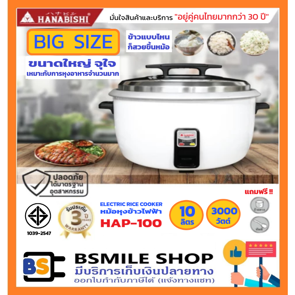 7. HANABISHI หม้อหุงข้าวไฟฟ้าใหญ่ HAP-100 ขนาด 10 ลิตร ประกันสินค้า 3 ปี