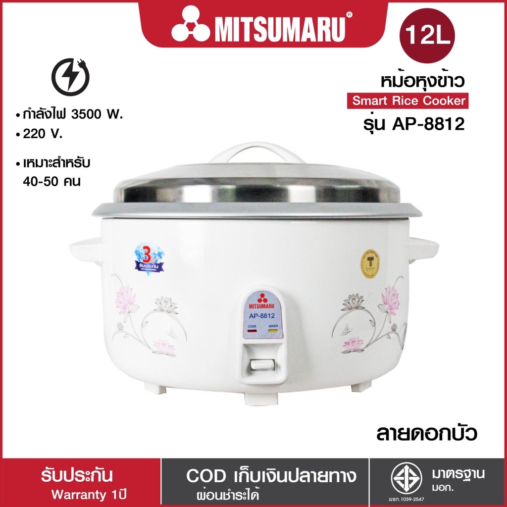4. Mitsumaru หม้อหุงข้าวไฟฟ้า ขนาด 12 ลิตร รุ่น AP-8812 (หม้อในอลูมิเนียม) รับประกันตามบริษัทผู้ผลิตกําหนด หุงกินได้หลายคน