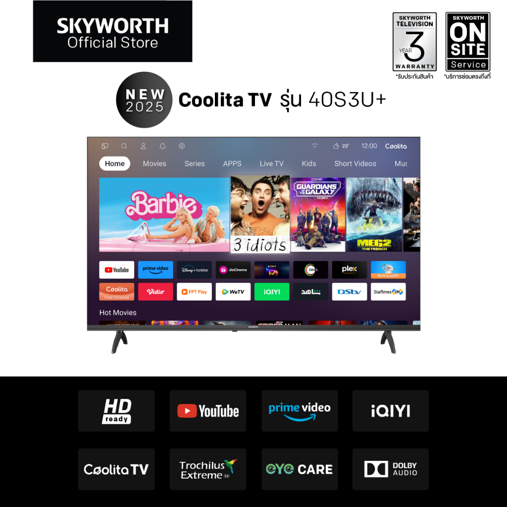 7. SKYWORTH ทีวี 40″ SmartTVรุ่น 40S3U+ Full HD ทีวี 40 นิ้ว Wi-Fi YouTube CC cast **ไม่รองรับNetflix**