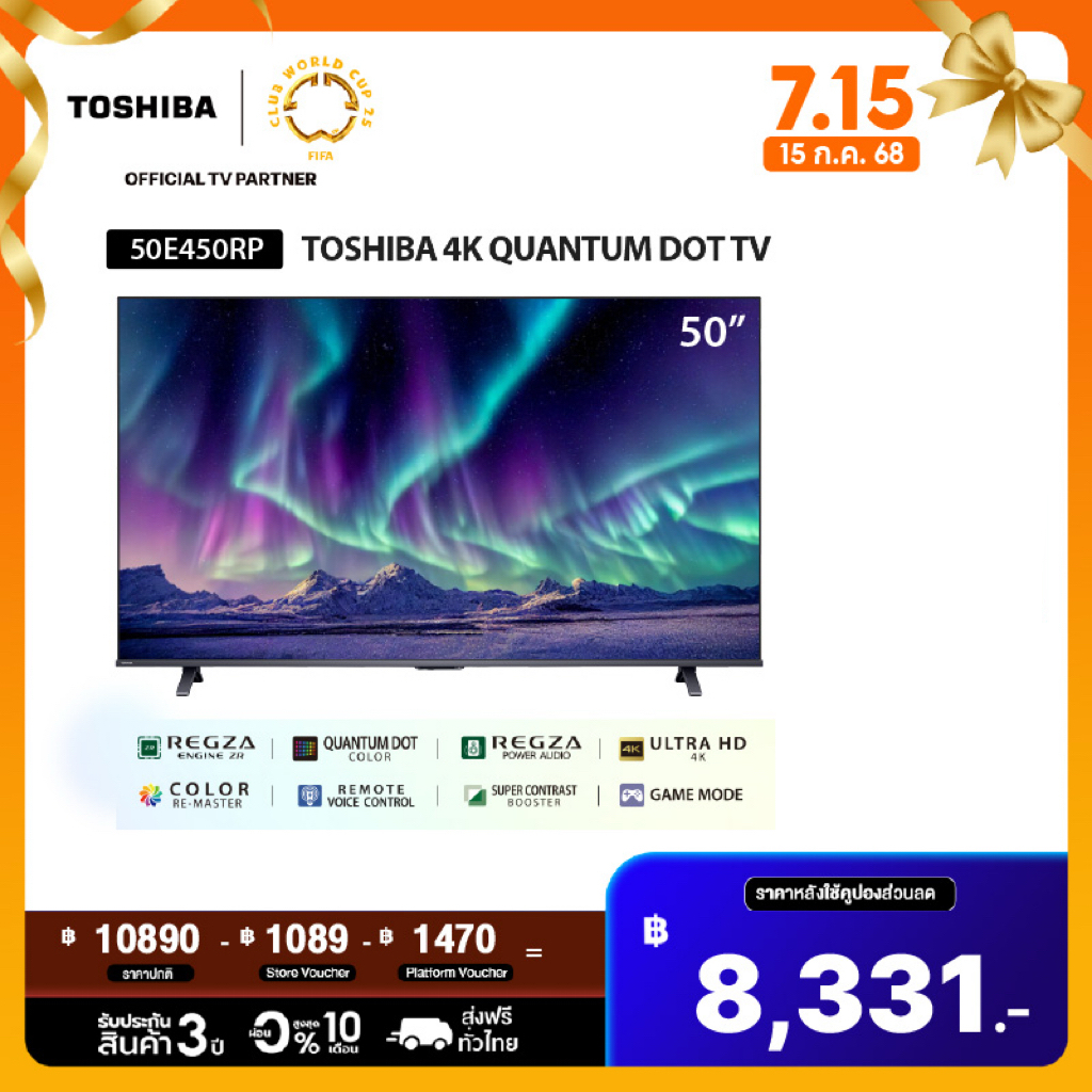 1. [Presale to 9th AUG]Toshiba TV 50E450RP ทีวี 50 นิ้ว 4K Ultra HD Quantum Dot VIDAA HDR10+ Dolby Atmos Smart TV