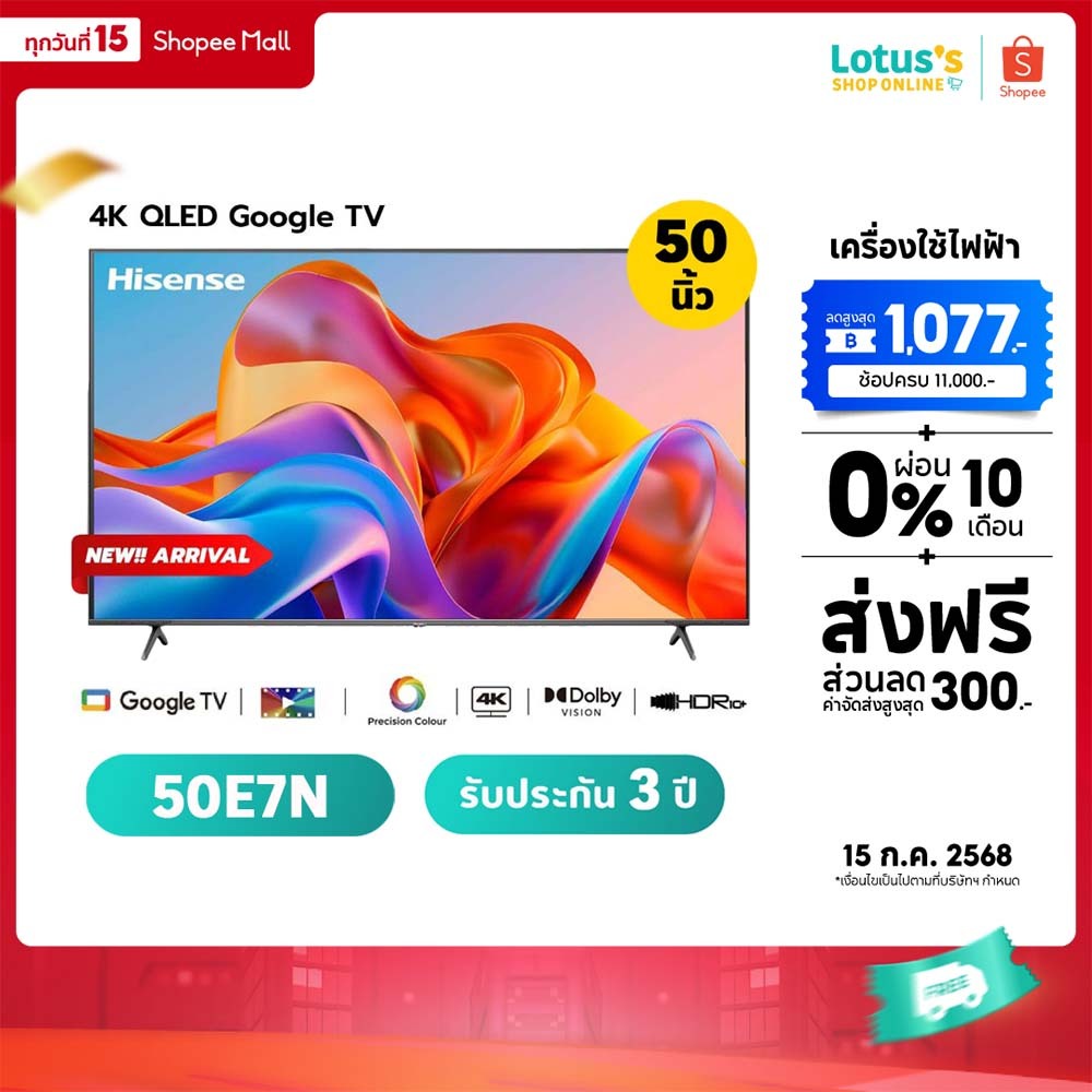9. HISENSE ทีวี 50″ Google TV QLED 4K Series S25 รุ่น 50E7N รับประกันตัวเครื่อง 3 ปี HISENSE TV GOOGLE QLED 4K 50IN #50E7N