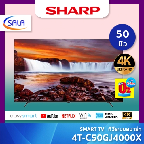 8. SHARP ทีวี 4K ขนาด 50 นิ้ว รุ่น 4T-C50GJ4000X ระบบสมาร์ท รองรับ YOUTUBE NETFLIX PRIME VIDEO ผ่อน 0%