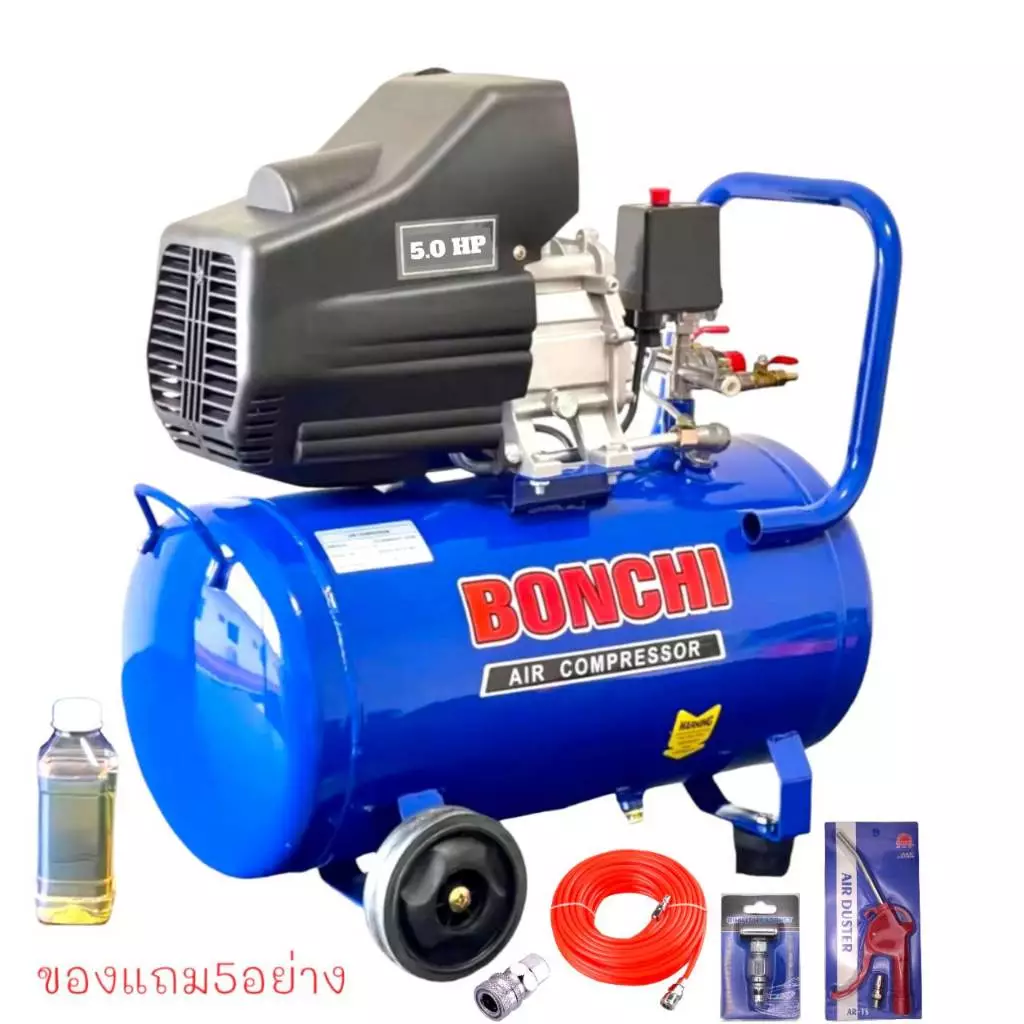 3. ปั๊มลม 50 ลิตร ปั๊มลมโรตารี่ 3 แรงม้า ยี่ห้อ Bonta รุ่น BT-50L (พร้อมสายลม+หัวเป่าลม+หัวเติมลม)