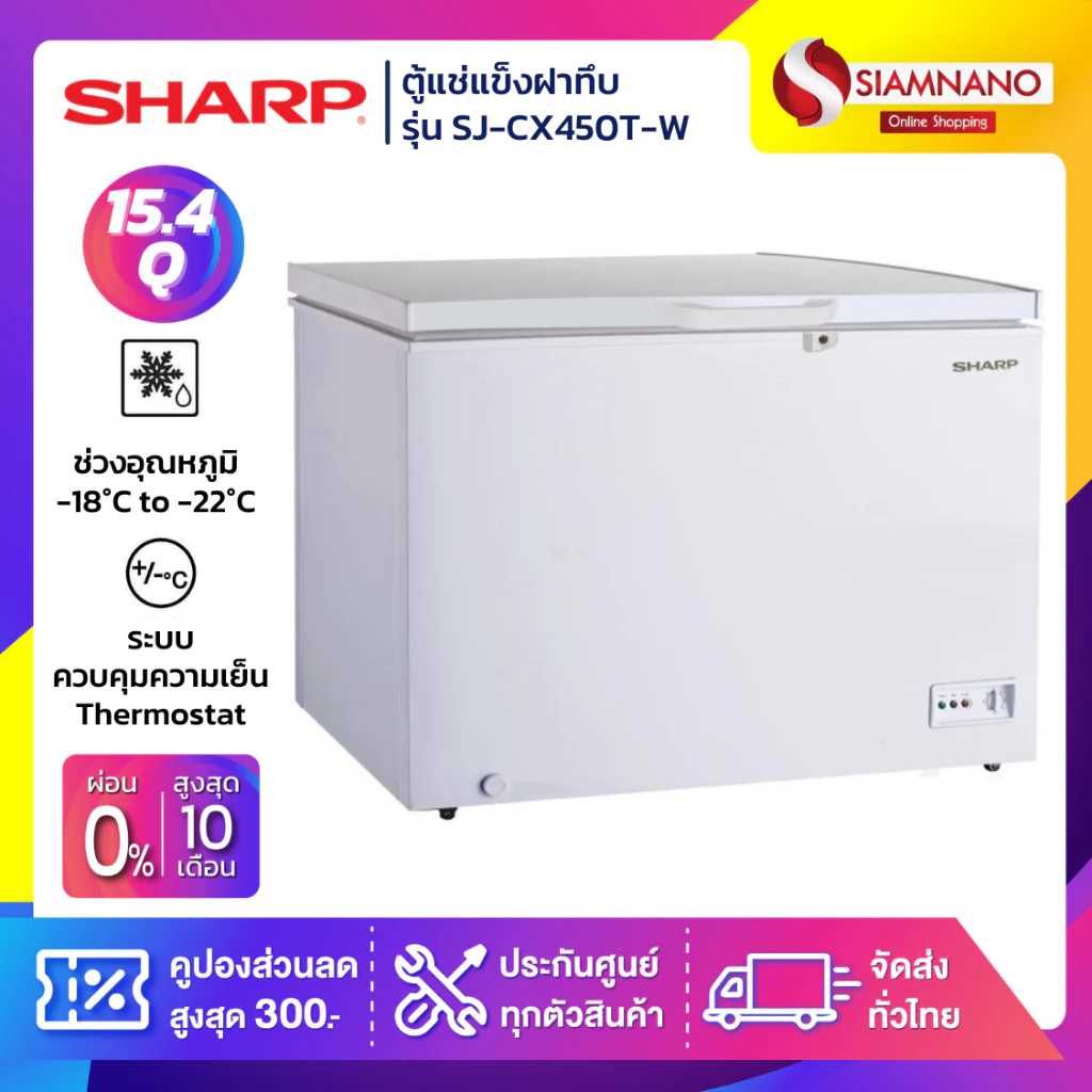 9. SHARP ตู้แช่แข็งชนิดฝาทึบ ความจุ 10.1 / 7 / 5 / 3.5 คิว รุ่น SJ-CH300T-W / SJ-CH200T-W / SJ-CH150T-W / SJ-CH100T-W