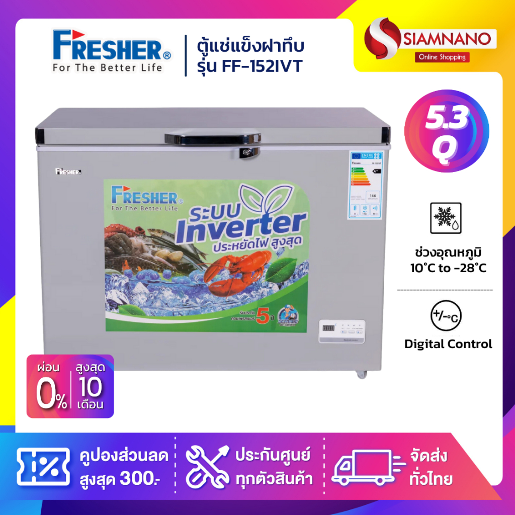 3. ตู้แช่แข็งฝาทึบ ระบบ Inverter Fresher รุ่น FF-152IVT ขนาด 5.3 Q ( รับประกันนาน 5 ปี )