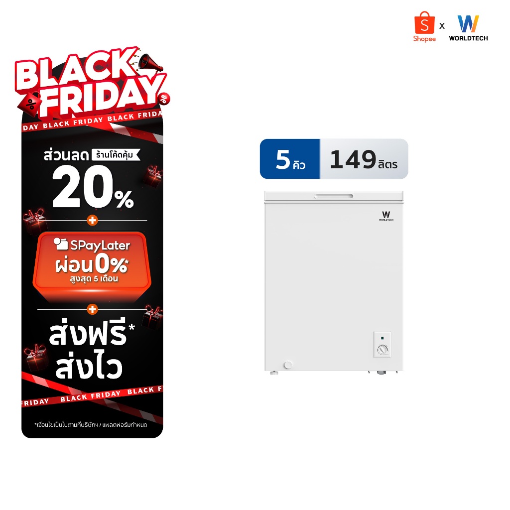 1. Worldtech ตู้แช่ 2 ระบบ แช่เย็น และ แช่แข็ง ขนาด 5Q. 149ลิตร ประกัน 3 ปี Chest Freezer รุ่นWT-FZ150