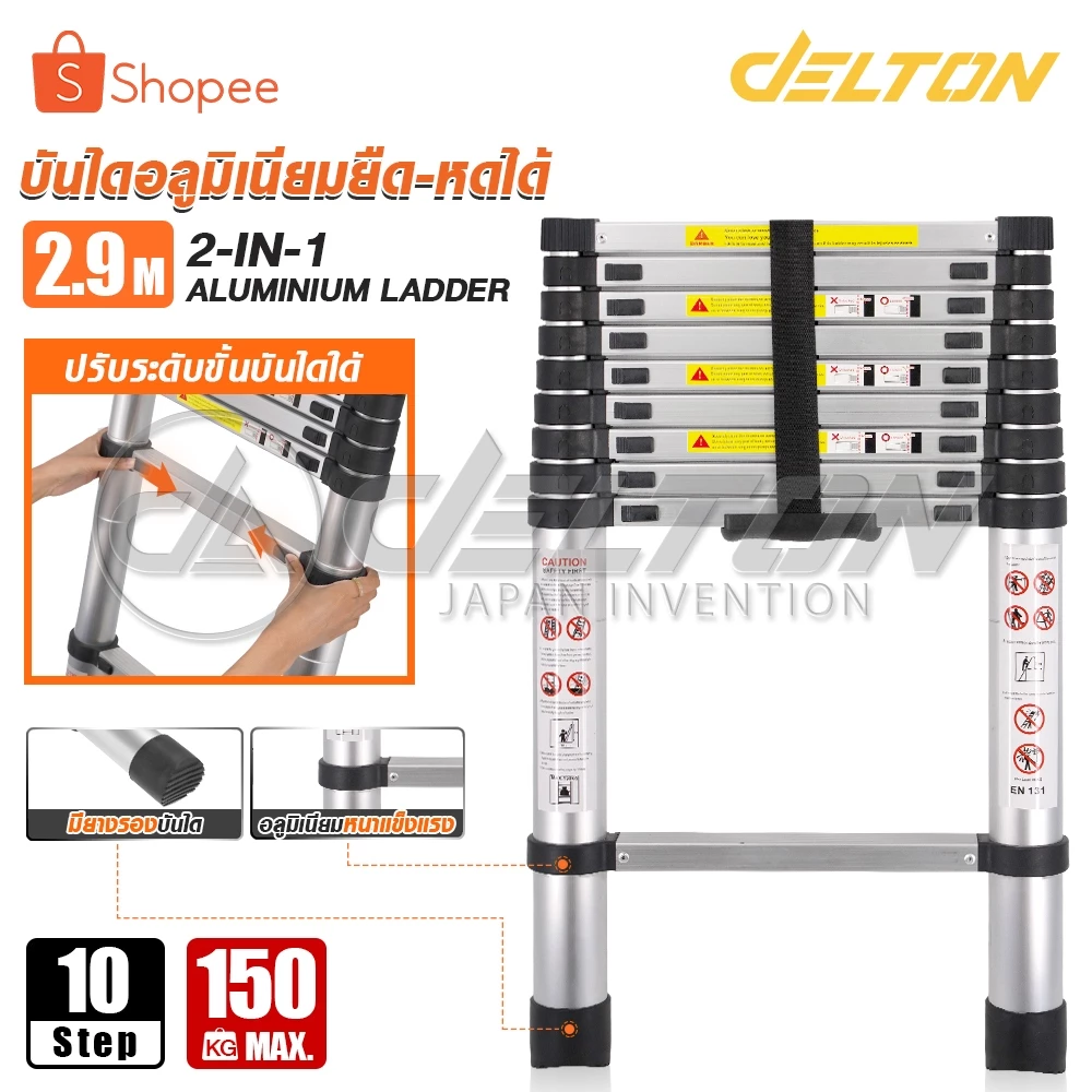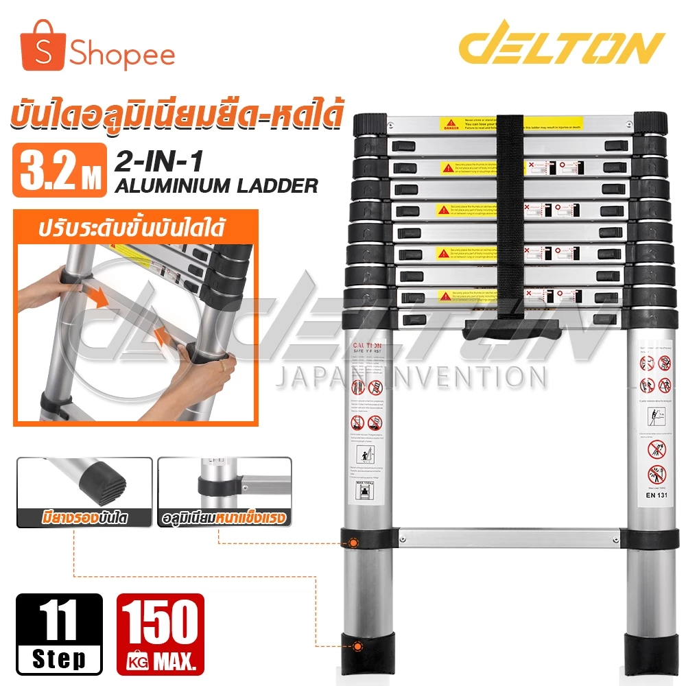 - DELTON บันได 12 ขั้น 8-in-1 ปรับเปลี่ยนรูปแบบการใช้งานได้ถึง 8 รูปแบบ
