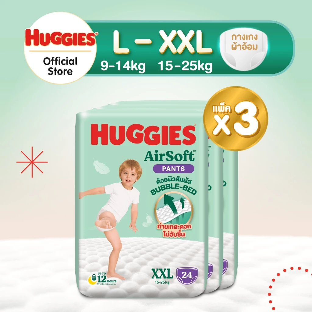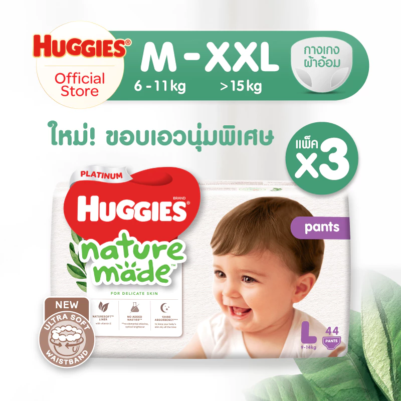 - แพมเพิสเด็ก ยี่ห้อ Huggies Gold Soft&Slim Pants ผ้าอ้อมเด็กพรีเมียม แบบกางเกง Size S-XXL