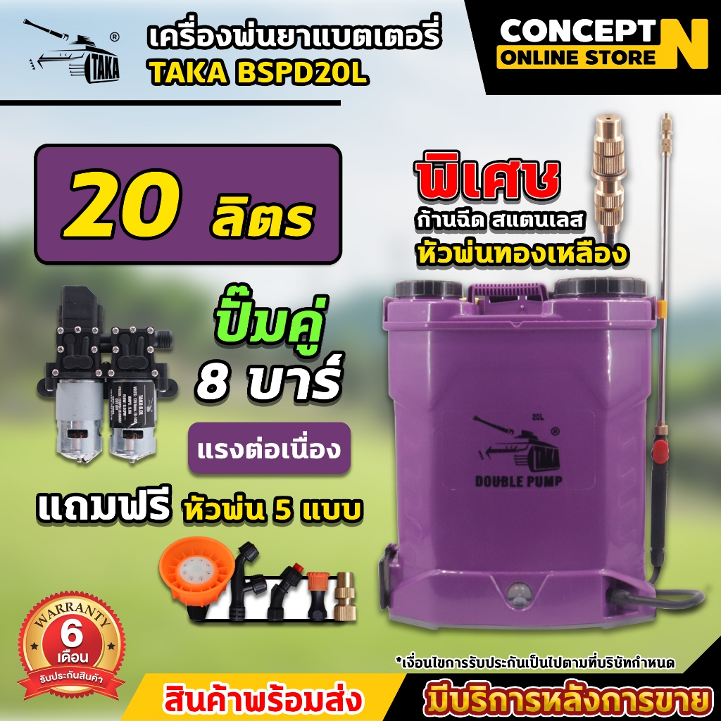 5. ถังฉีดพ่นยา ปั๊มคู่ แรงคูณ2 พิเศษด้ามฉีดหัวทองเหลือง TAKA BSPD20L เครื่องพ่นยา แบตถังคู่ ถัง 20ลิตร