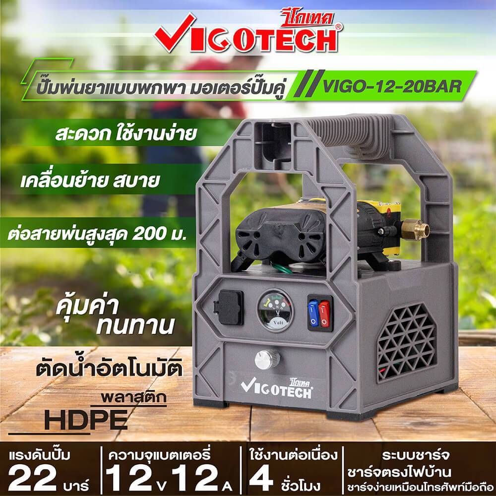4. ชุดเครื่องพ่นยาแบตเตอรี่พกพา พร้อมใช้งานแรงด้วยมอเตอร์ปั๊มคู่ 22บาร์แบต12V VIGOTECH ตัดน้ำอัตโนมัติ