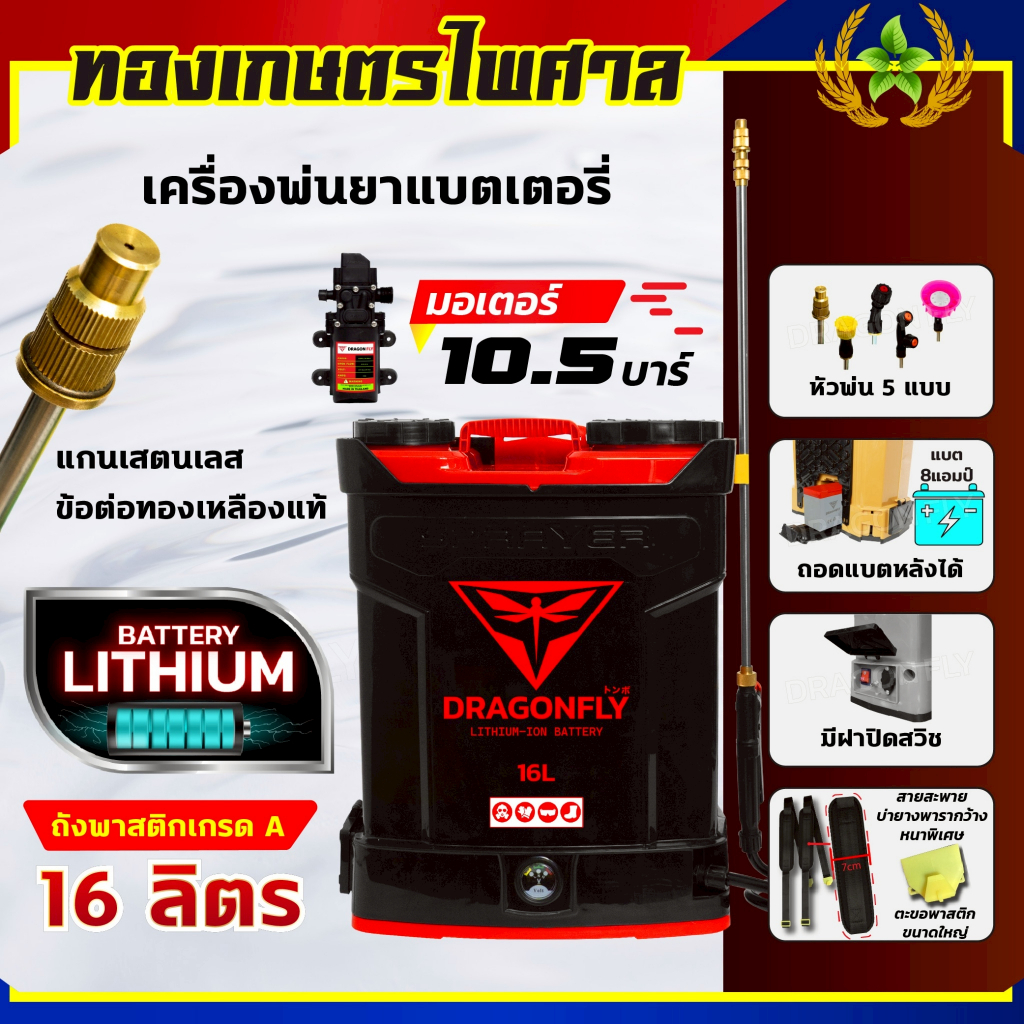 2. ถังพ่นยาแบตเตอรี่ 16ลิตร (DRAGONFLY) พ่นน้ำยาฆ่าเชื้อได้ พ่นยา ฆ่าหญ้า พ่นยาแบต สีBlackRed