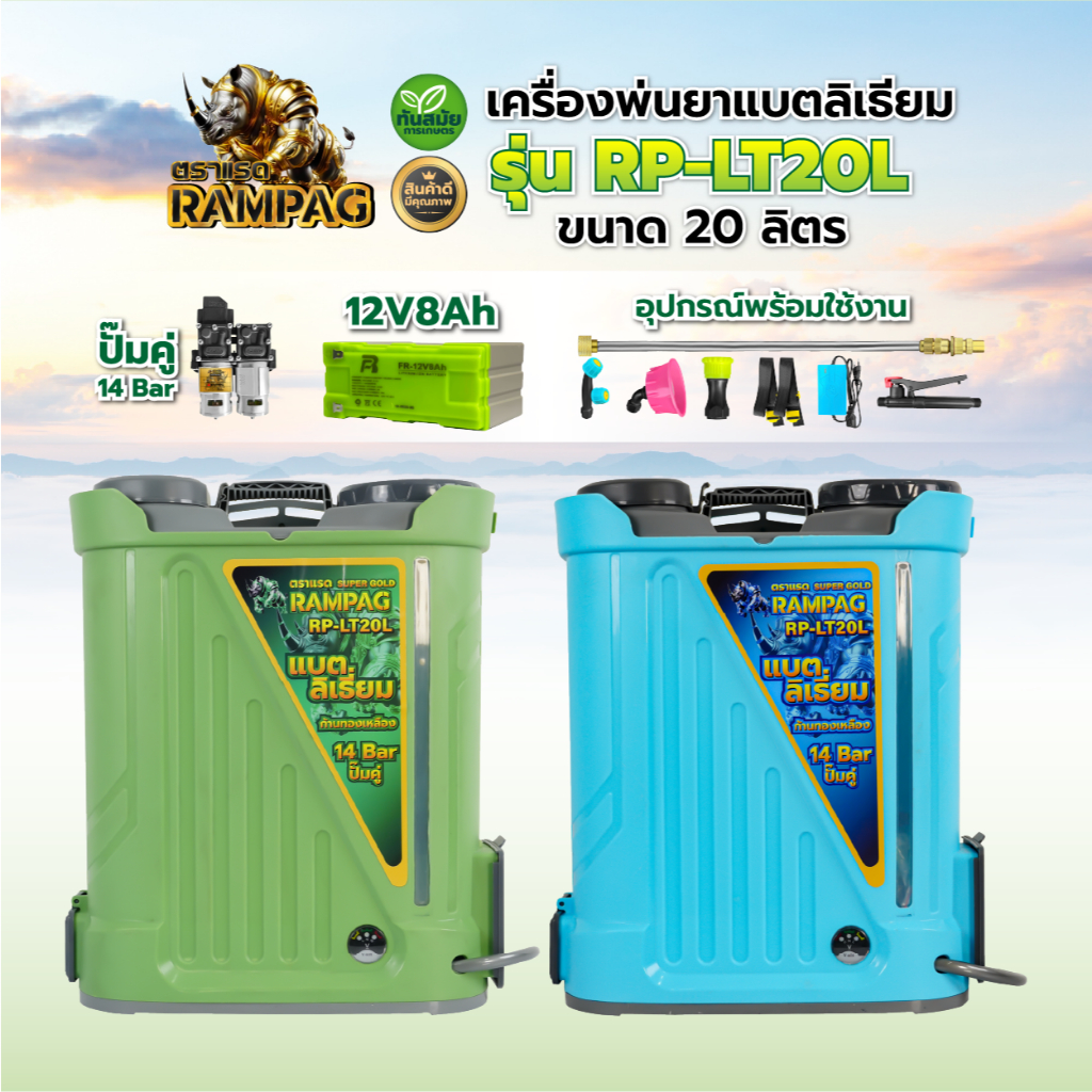 9. เครื่องพ่นยาแบตเตอรี่ (เกรด A) ตราแรดRAMPAG / ควายไทย ขนาด16-20ลิตร พ่นยาฆ่าเชื้อ ถังหนา พ่นยาแบต