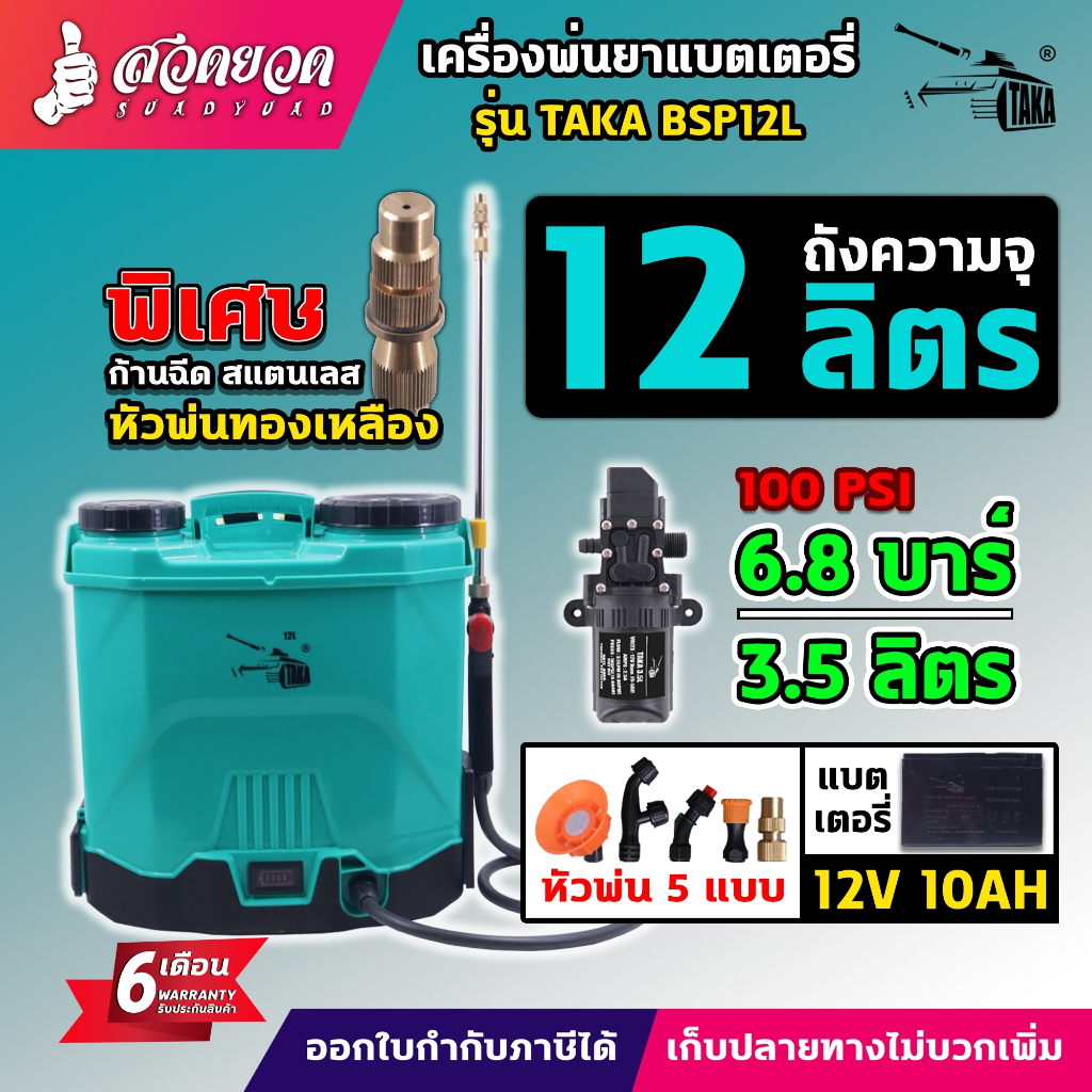 1. เครื่องพ่นยา TAKA BSP ขนาด 12 16 18 20 25 ลิตร ถังพ่นยาแบตเตอรี่ แบตอึด พ่นฆ่าเชื้อโรค พ่นแรง ประกัน 6 เดือน สวดยวด