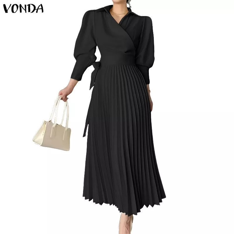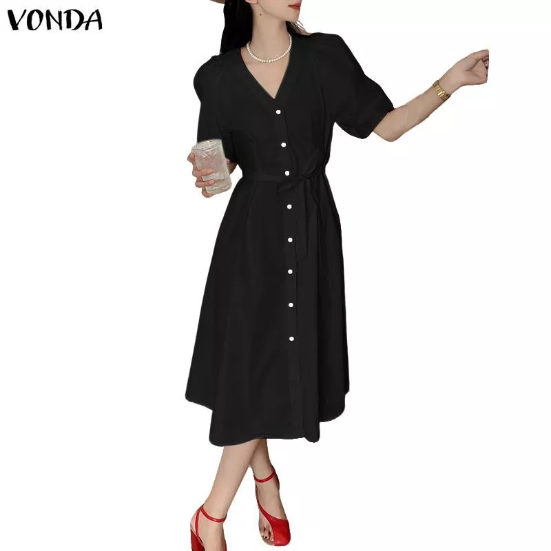 1. VONDA ชุดเดรสผูกเชือกสไตล์ลำลองเกาหลีสำหรับผู้หญิง