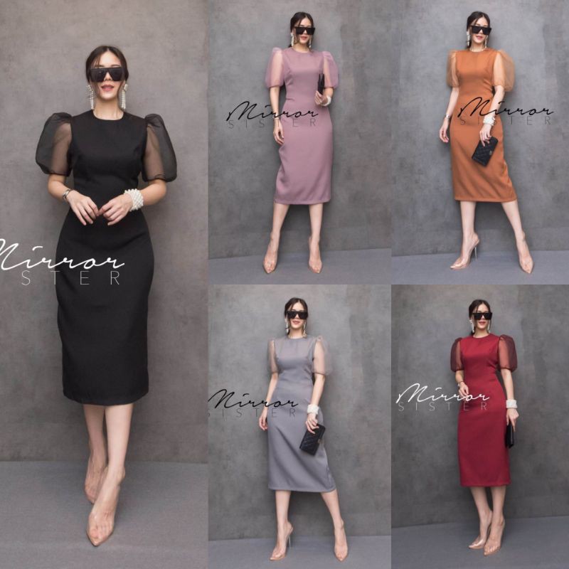 8. 🏷️Mirrorsister #30927.9 เดรสทรงBasic เดรสแขนพอง เรียบหรู ชุดออกงาน ชุดทำงาน