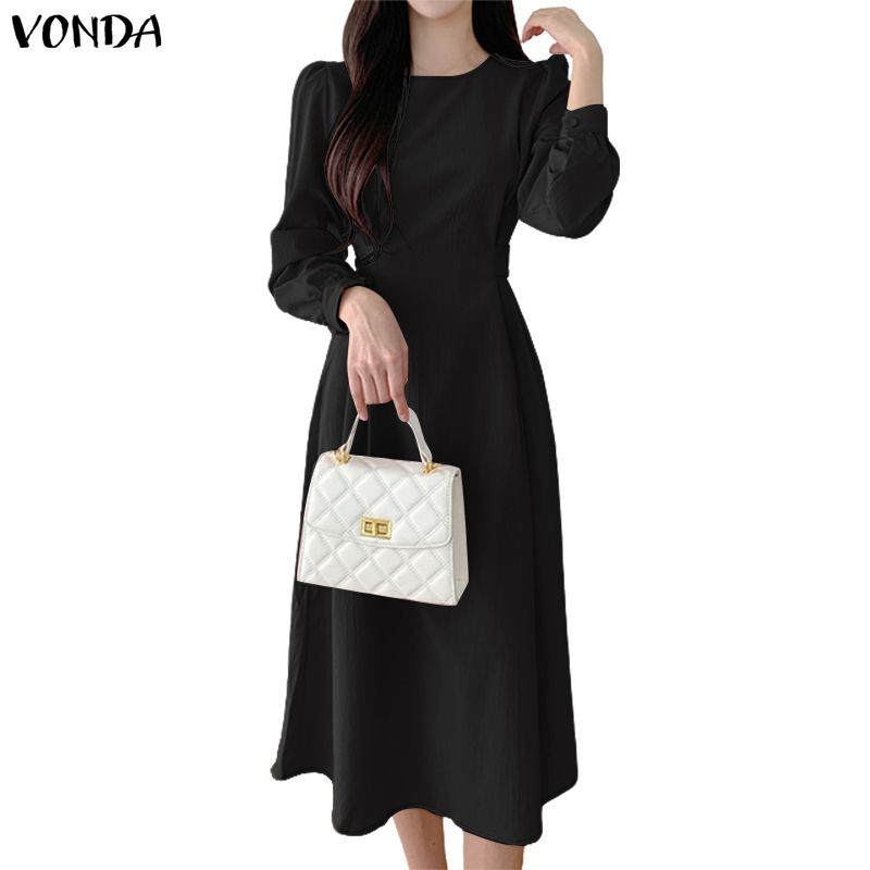 4. VONDA ชุดเดรสแขนยาวคอกลมรัดรูปสไตล์เกาหลีสำหรับผู้หญิง