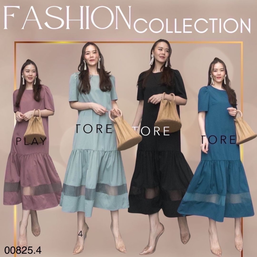 10. 🔖Mirrorsister 00825.4 เดรสแขนสั้นคอกลม ช่วงชายกระโปรงแต่งระบายบาน เสริมดีเทลต่อผ้าซีทรูเนื้อโปร่งแสงใส่ง่ายชุดเดียว
