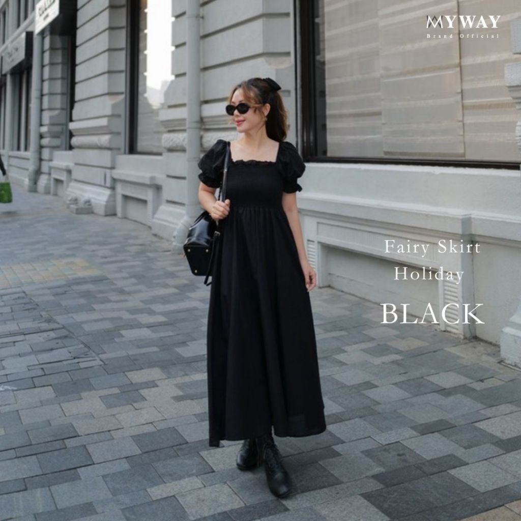 7. MyWay Brand : Dress – Fairy Skirt Holiday เดรสสีขาว ดำ ชุดเปิดไหล่