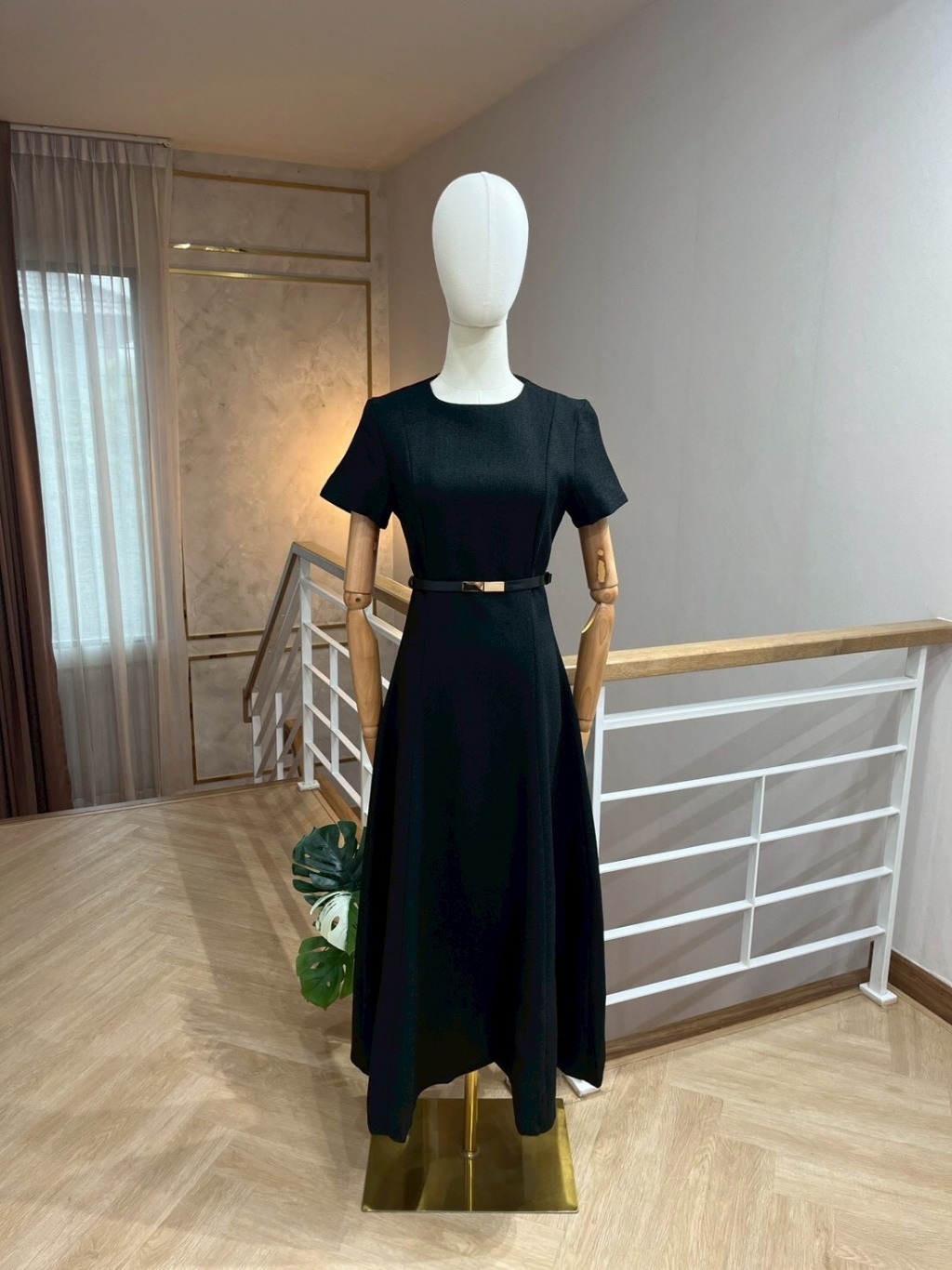 3. BT 03-7285TW เดรสยาวแขนสั้นคอกลม ซิปหลัง อกเอวเข้ารูป กระโปรงบานออก ผ้าทวิต มาพร้อมเข็มขัดสีเดียวกับชุด