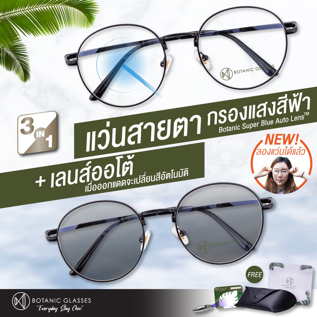 - แว่นสายตาสั้น Botanic Super Blue Light Blocking + Super Auto Lens (กรองแสงสีฟ้าได้ ออกแดดเปลี่ยนสีได้)