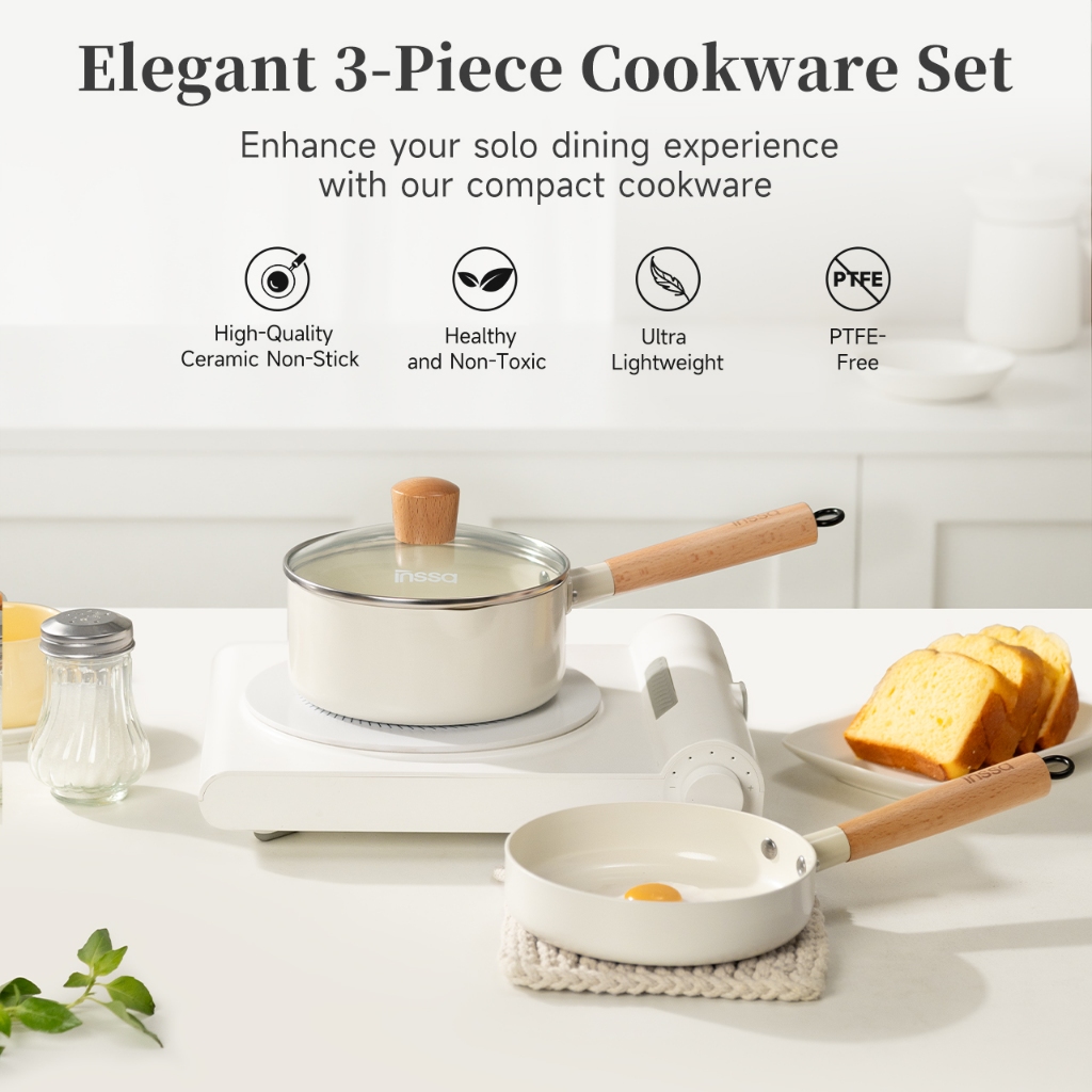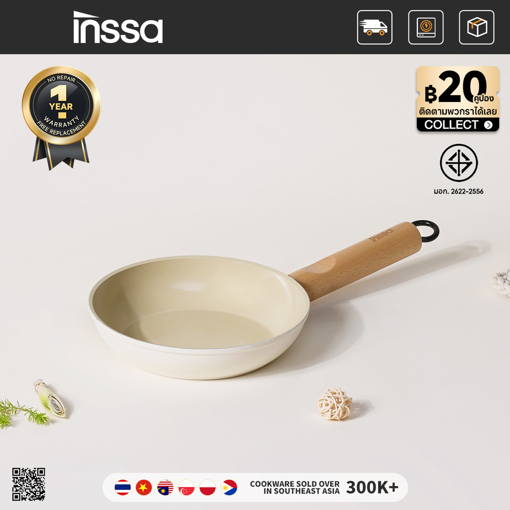 5. Inssa กระทะสามารถใช้ได้กับเตาแก๊สในครัวเรือนเตาแม่เหล็กไฟฟ้ากระทะเซรามิคกระทะ 18/24 ซม.GUOJ022