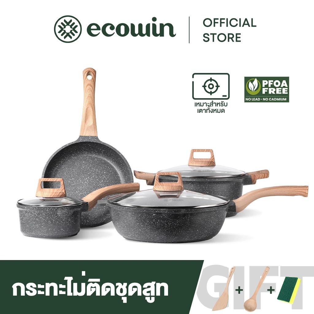 1. Ecowin กระทะเคลือบเซรามิก ชุดหม้อไม่ติดกระทะ รับประกัน 1 ปี แบบ ใช้ได้กับเตาทุกประเภท
