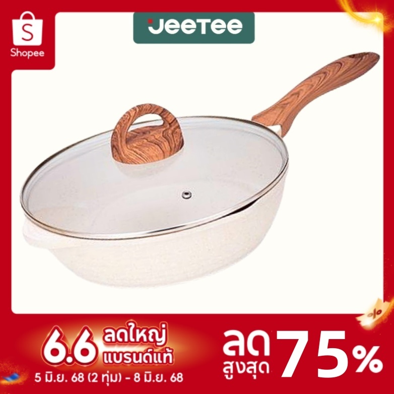 10. JEETEE กระทะเคลือบหินอ่อน ก้นลึก/ก้นแบน 24/28/32ซม เกรดพรีเมี่ยม ไม่ติดกระทะ ทำความสะอาดง่า กระทะก้นลึก ใช้ได้กับเตาแก๊ส และเตาแม่เหล็กไฟฟ้าทุกชนิด