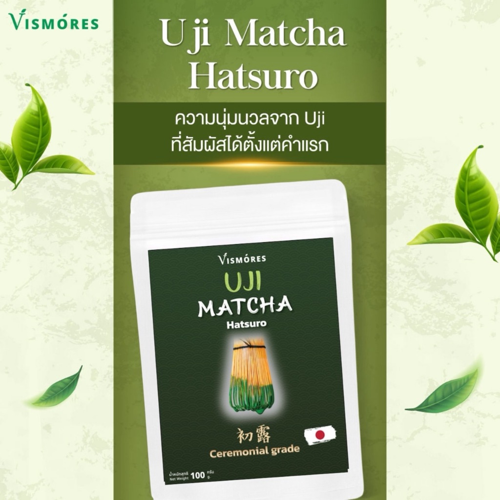 2. อูจิมัทฉะ เกรดพิธีการ Uji Matcha Ceremonial Grade Hatsuro นำเข้าจากญี่ปุ่น ขนาด100g