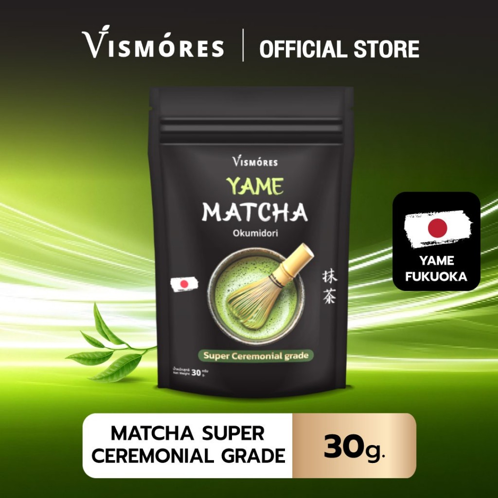 8. ผงมัทฉะ ( เกรดพิธีการขั้นสูง ) Yame Matcha Super Ceremonial Grade Vismores จากญี่ปุ่น ขนาด 30 กรัม
