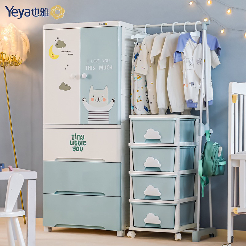 7. ตู้เสื้อผ้าเด็ก ตู้เสื้อผ้าลายการ์ตูน ที่เก็บของประตูคู่และลิ้นชัก คลื่อนย้ายสะดวกหยัดพื้นที่เก็บของ