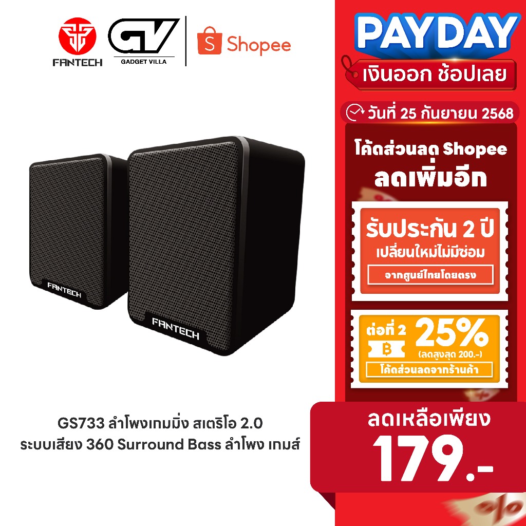 9. FANTECH GS733 Gaming Speaker Stereo ลำโพงเกมมิ่งสเตริโอ 2.0 ระบบเสียง 360 Surround Bass Membrane