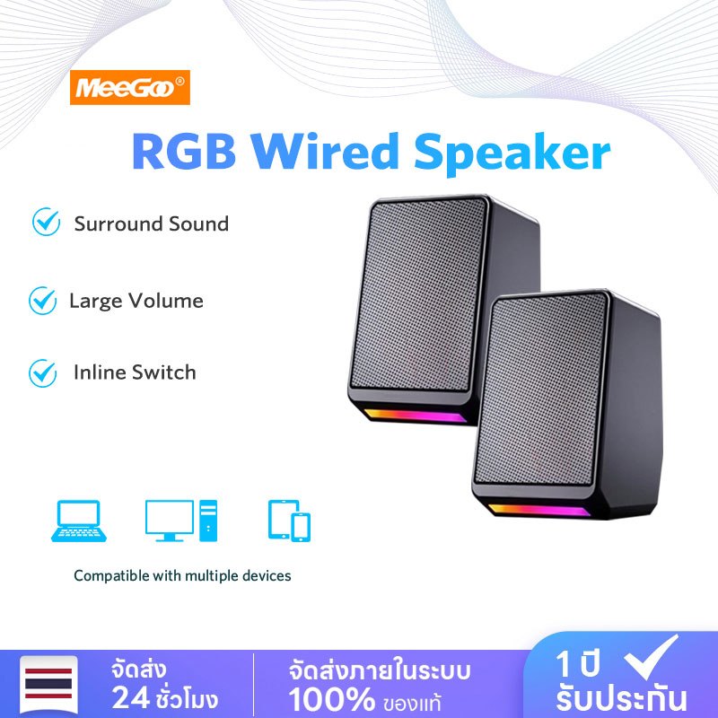 10. MeeGoo สำหรับคอมพิวเตอร์ เสียงสเตอริโอ 3D ที่มีเสียงใหญ่และเบสหนัก พร้อมไฟ LED RGB มีสีสัน