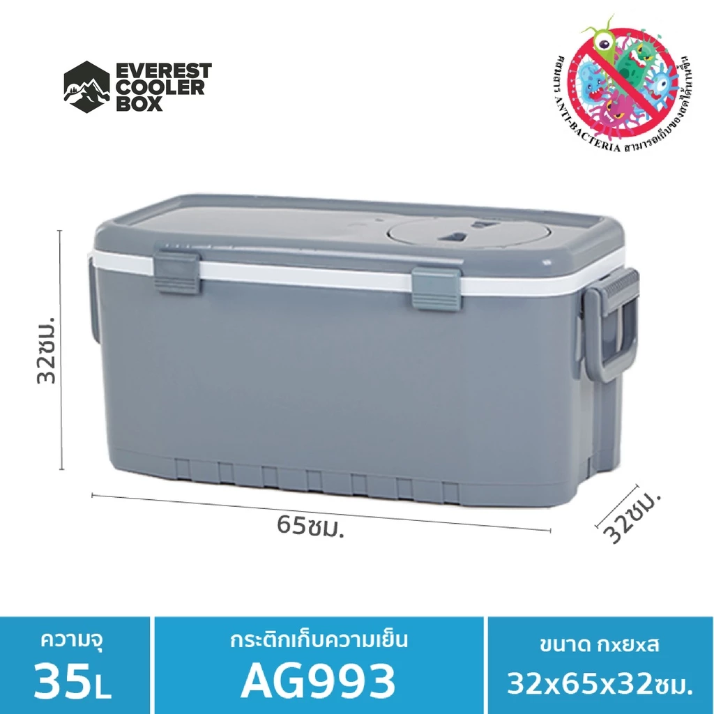 9. เอเวอเรสต์ กระติกน้ำแข็ง เหลี่ยม 32 ลิตร สีน้ำเงิน รุ่น 2532B EVEREST BLUE SMARTCOOLER BOX 32 L 2532B