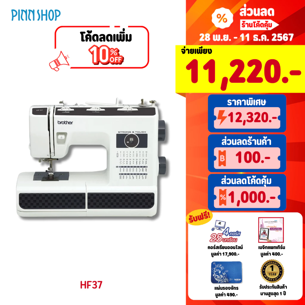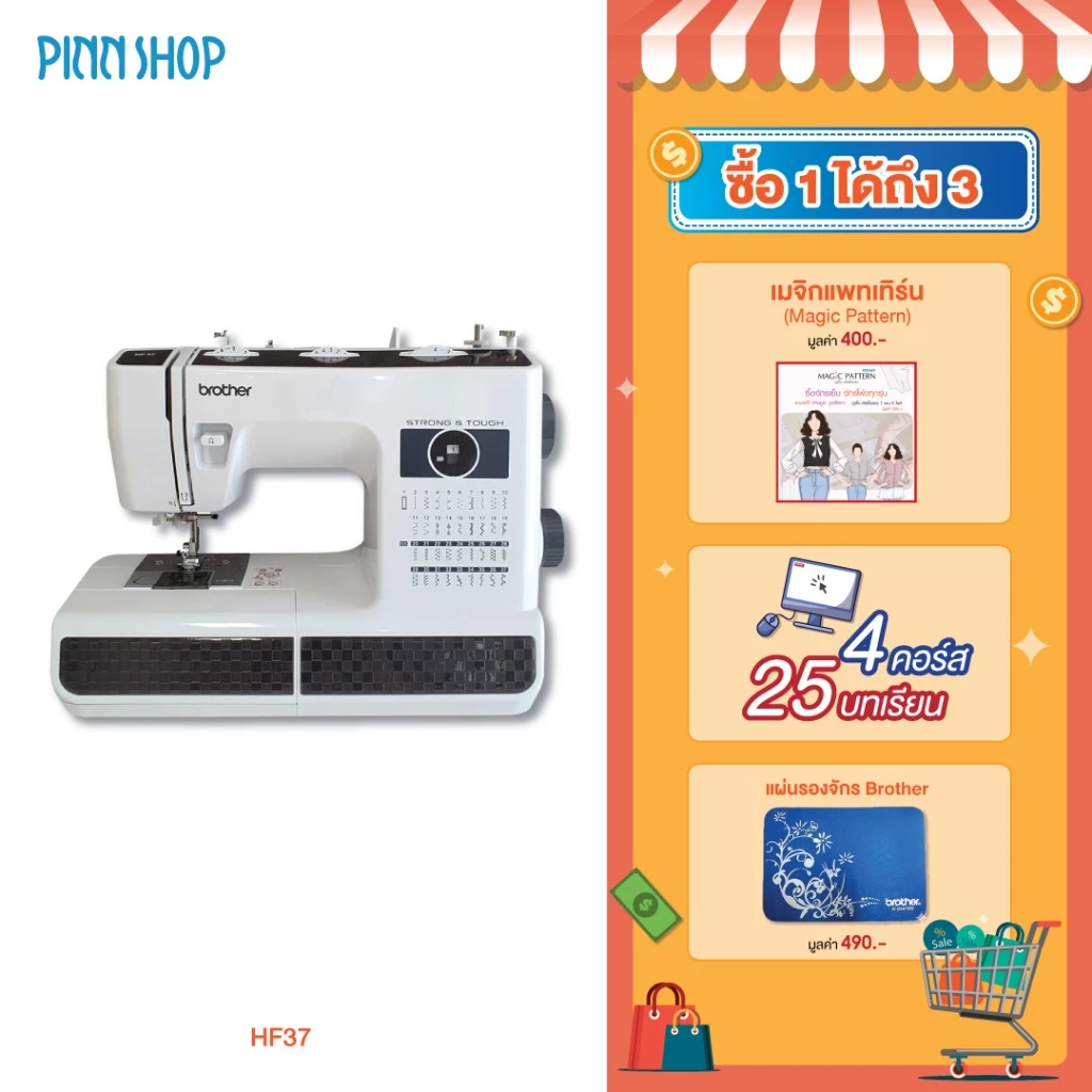 - สนเข็มอัตโนมัติ ใช้งานง่าย มี 37 ลายเย็บ