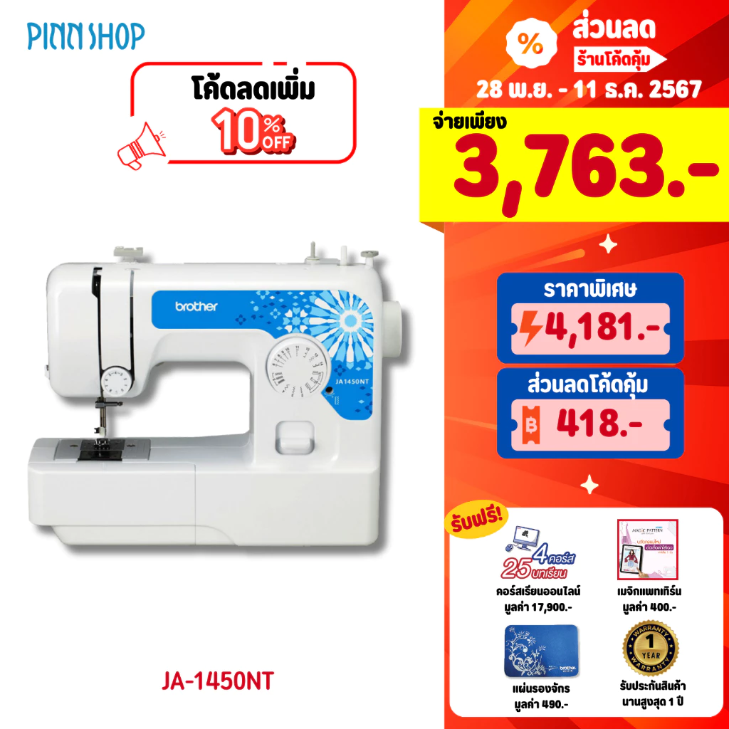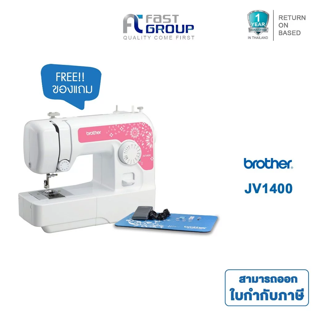 1. Brother จักรเย็บผ้า รุ่น JV1400 จักรเย็บตะเข็บภายในเครื่อง 14 ลาย, ไฟส่องสว่าง LED