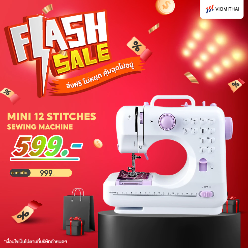 3. จักรเย็บผ้าไฟฟ้า 12ตะเข็บ ระบบด้ายคู่ Sewing machine จักรเย็บผ้ามินิ เครื่องจักรเย็บผ้า