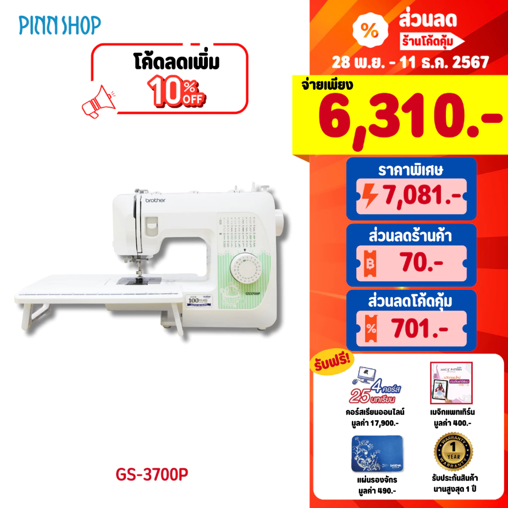 2. Brother จักรเย็บผ้า รุ่น GS-3700P จักรเย็บผ้าไฟฟ้า รุ่นยอดนิยม