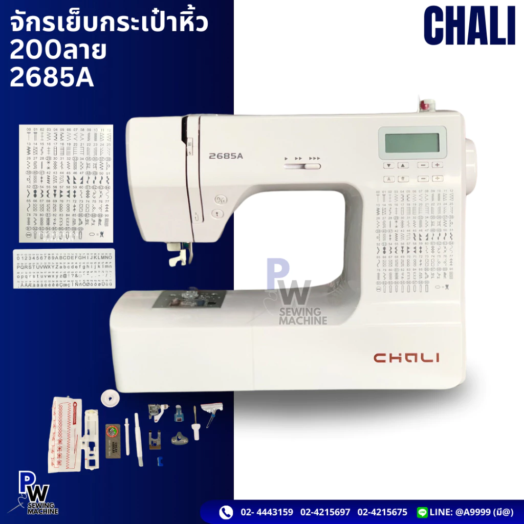 10. จักรเย็บผ้าไฟฟ้า200ลาย จักรซิกแซกกระเป๋าหิ้ว CHALI,TSM ปักตัวอักษร+ทำรังดุมได้ ประกัน6เดือน