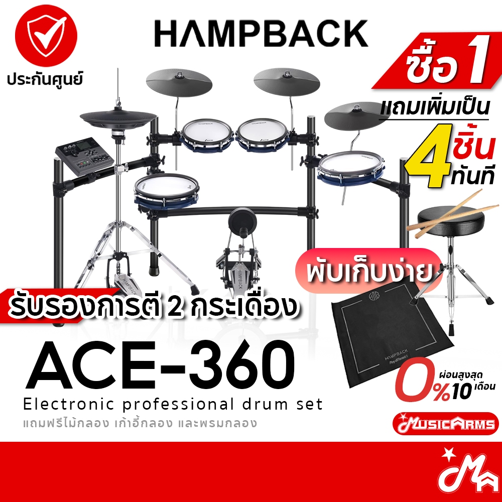 9. Hampback ACE-360 กลองไฟฟ้า ฟรีไม้กลอง เก้าอี้ พรม Electric Drum Music Arms