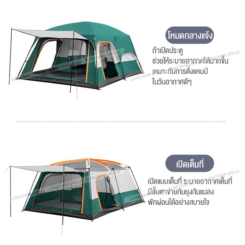 9. พร้อมส่ง⚡️เต็นท์ครอบครัว เต็นท์ขนาดใหญ่ เต็นท์สนาม 2ห้องนอน2โถง จุได้ 10-12 คน การออกแบบเต็นท์สองชั้