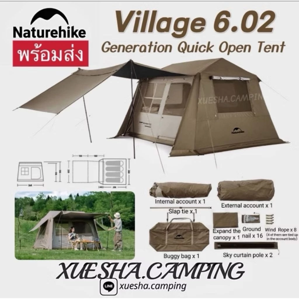7. Naturehike Village 6.0 Ridge 2 generation เต็นท์เปิดเร็วสำหรับ 4-6 คน ความจุขนาดใหญ่ เต็นท์อัตโนมัติ กันน้ำ กันแดด สำหรับการรวมตัวของครอบครัวกลางแจ้ง