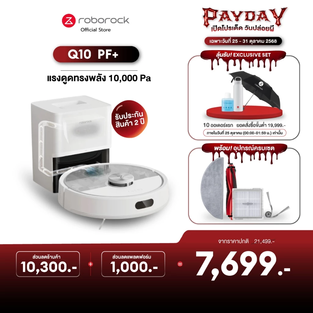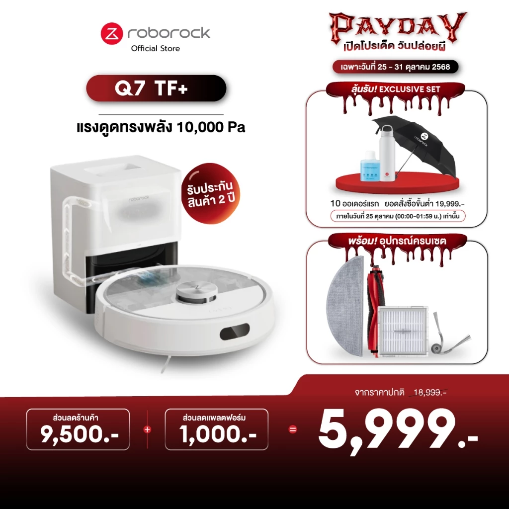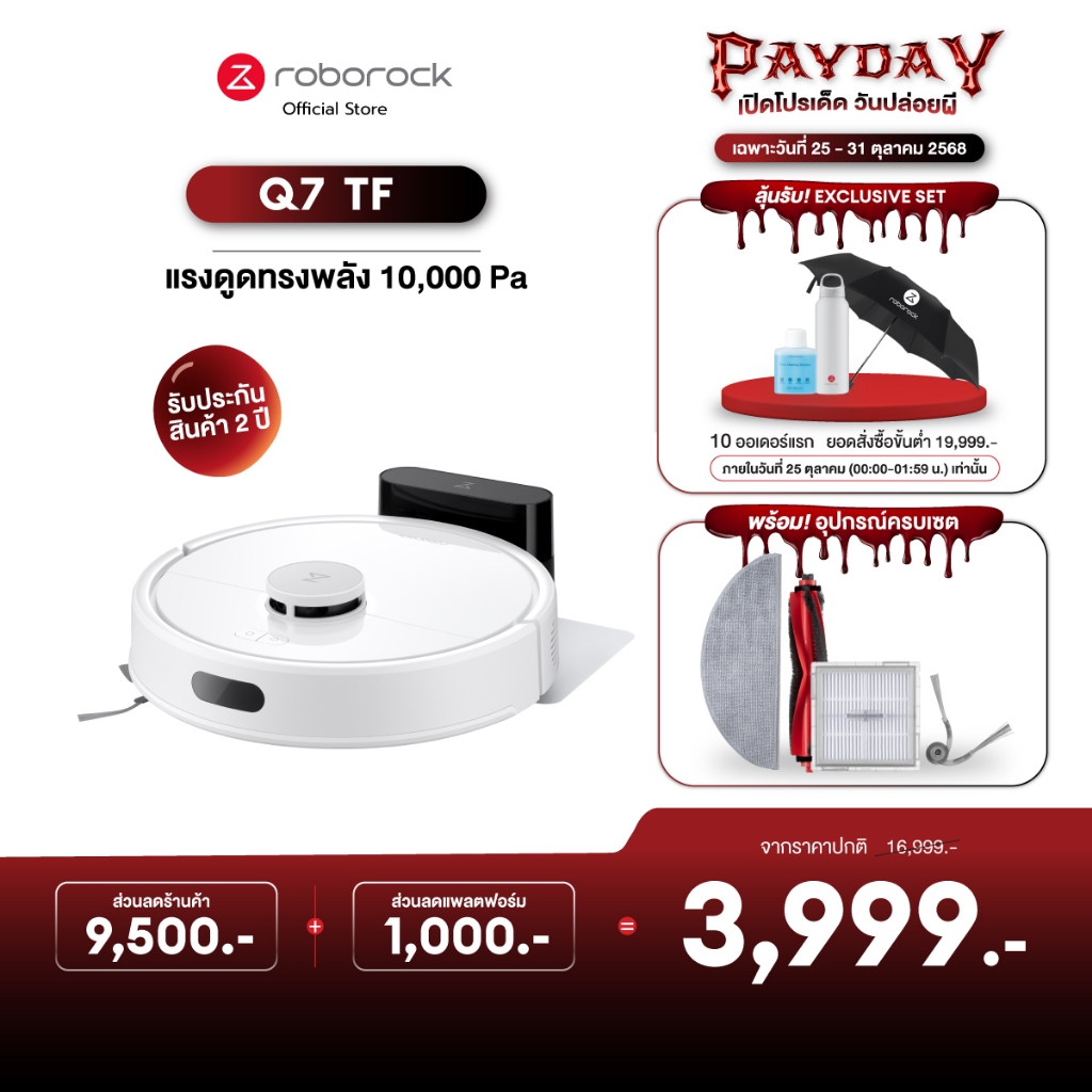 10. Roborock Q7 TF หุ่นยนต์ดูดฝุ่น ถูพื้น อัจฉริยะ แรงดูด 10,000 Pa รับประกัน 2ปี