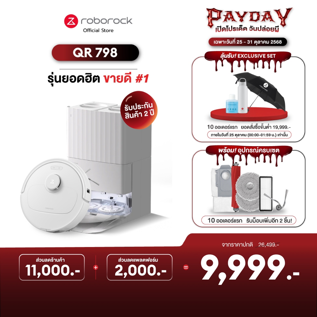 5. Roborock QR 798 (NEW Qrevo S) หุ่นยนต์ดูดฝุ่น ถูพื้น อัจฉริยะ เก็บฝุ่น ซักผ้า ถูพื้น เป่าลม แรงดูด10000pa