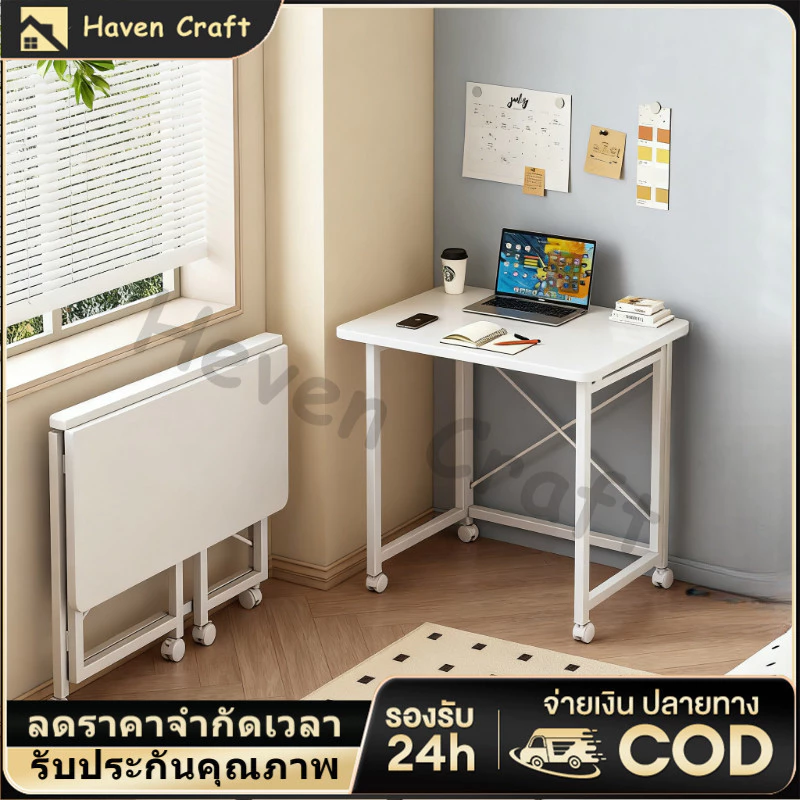 9. HC โต๊ะทำงานพับได้ โต๊ะคอม สามารถใส่เข้าช่องว่างได้ ล้อสากล 360 °เคลื่อนย้ายสะดวก