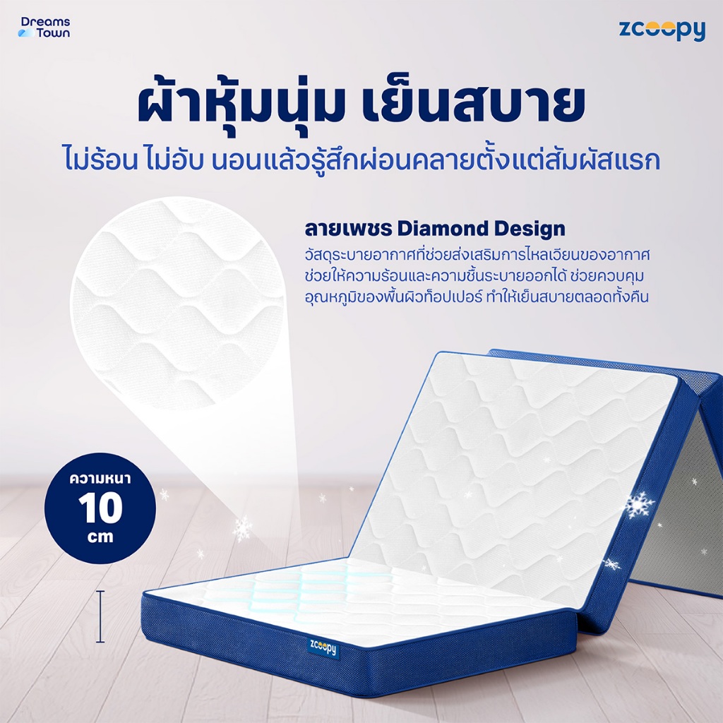 4. Zcoopy ที่นอนยางพารา ที่นอนปิคนิค พกพาได้ พับได้3ทบ สัมผัสแน่น วางพื้นได้ ไม่ปวดหลัง รุ่น 3 Fold Premium Latex Topper
