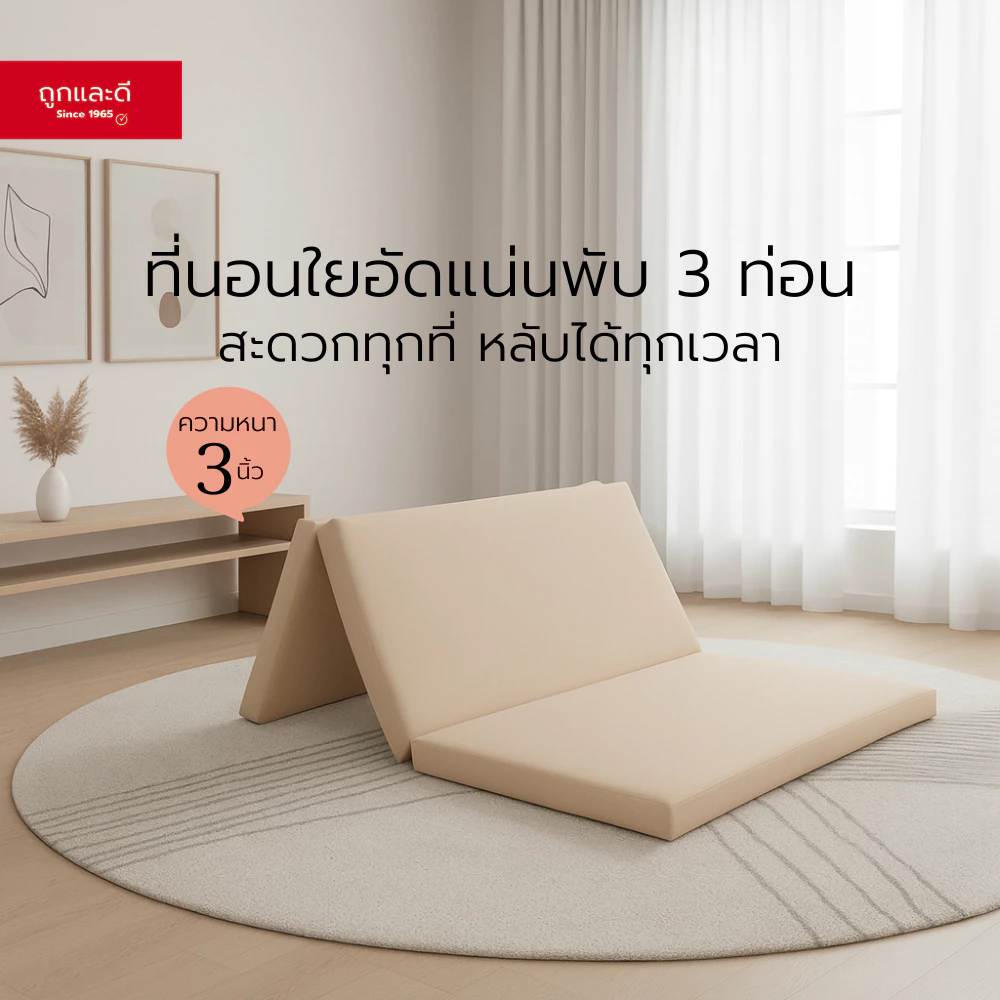 3. TookLaeDee ที่นอน PE ยางพาราสังเคราะห์ 3 พับ หนา 1 นิ้ว พับเก็บง่าย เคลื่อนย้ายสะดวก รองรับสรีระ ป้องกันอาการปวดหลัง