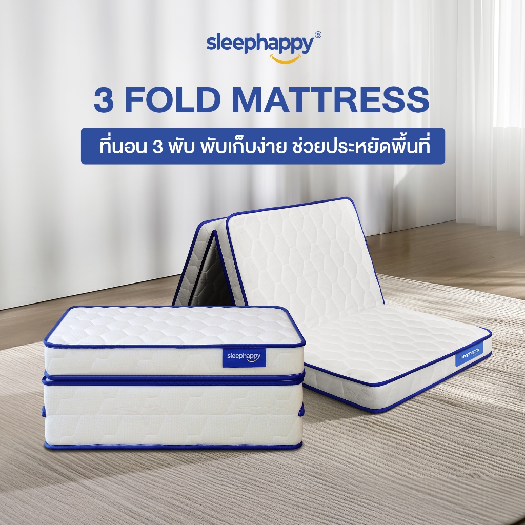 - SleepHappy 3 Fold รวมที่นอน 3พับ เสริมยางพาราธรรมชาติ เมมโมรี่โฟม และเมมโมรี่โฟมคูลเจล