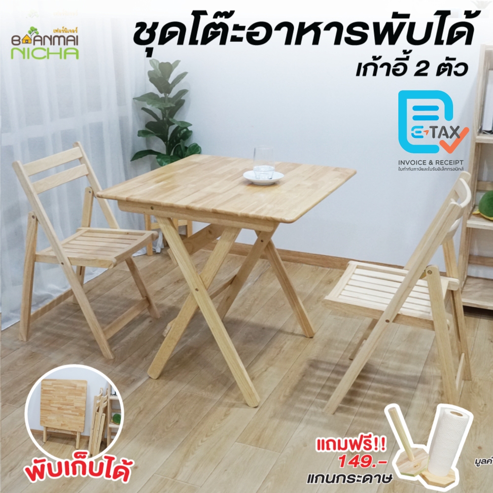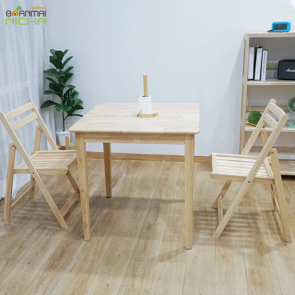 3. โต๊ะอาหาร โต๊ะไม้พับได้ไม้ยางพารา ขนาด 2 ที่นั่ง (โต๊ะ1+เก้าอี้2) บ้านไม้ณิชา