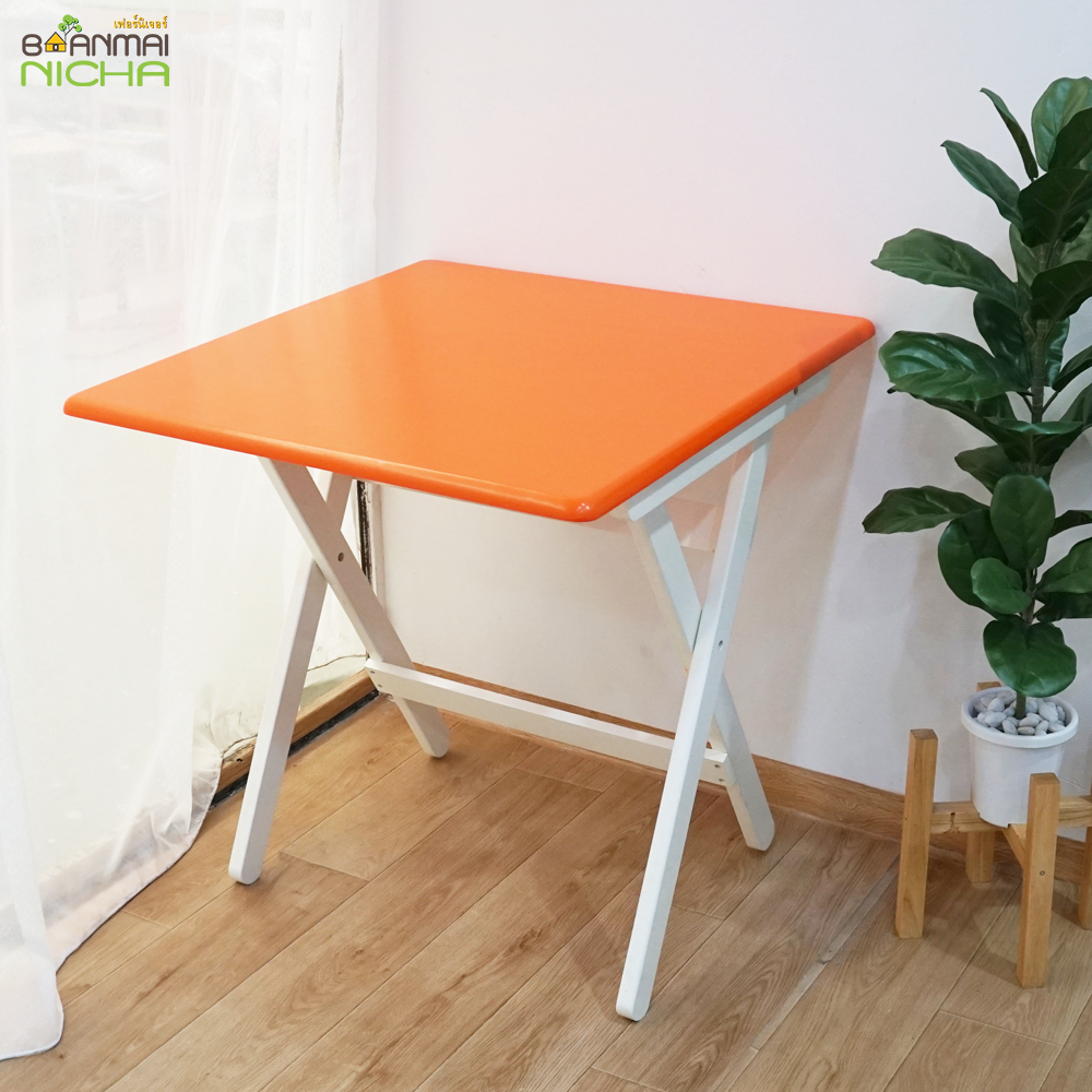 8. Baanmainicha โต๊ะอาหาร โต๊ะกินข้าว พับเก็บได้ ไม้ยางพารา Size 75x75x75 cm.(ทำสี) บ้านไม้ณิชา