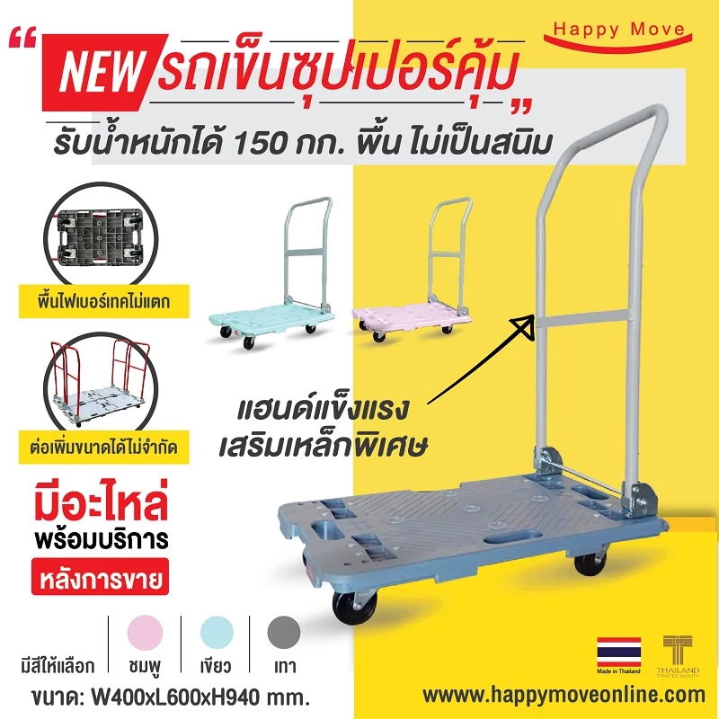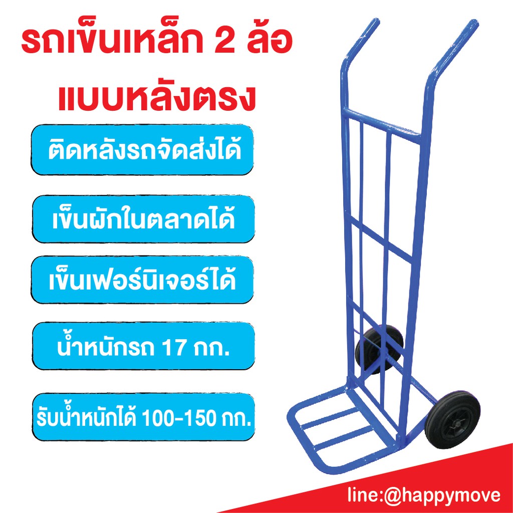 3. รถเข็นเหล็ก2ล้อ รถเข็นผัก รถเข็นน้ำ รถเข็นของแบบโค้ง (ล้อไนล่อนแข็ง-ล้อตันสีดำ) Happy Move